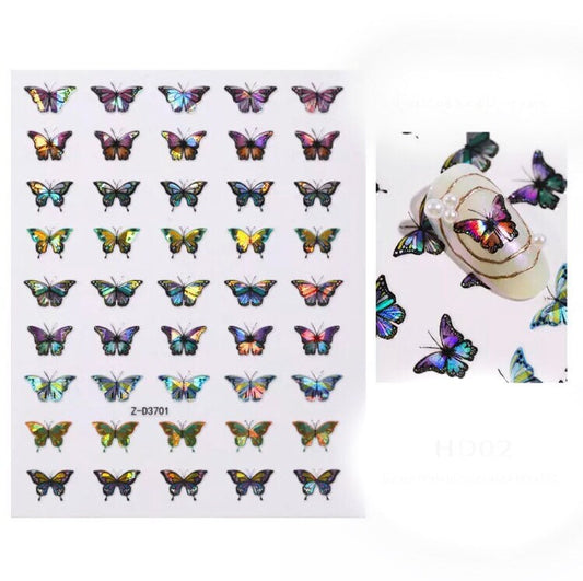2 sheets butterfly holographic design nail decals self adhesive stickers for trending fashion nail art supplies
