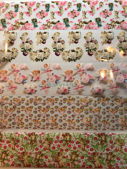 Angels & Cupids translucent Designs patterns nail transfer foils decals In a box