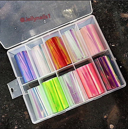 Aurora,mirror effect, mermaid color foils nail transfer In a box for trending art supplies