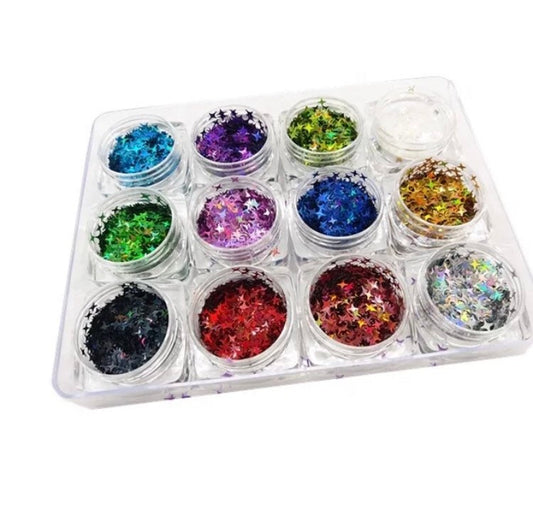 12 colors nail glitter sequins leafs Daisy Blossom stars circles nail art.