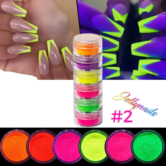 6 fluorescent, Matte Neon Pigments powders colors mix nail art.